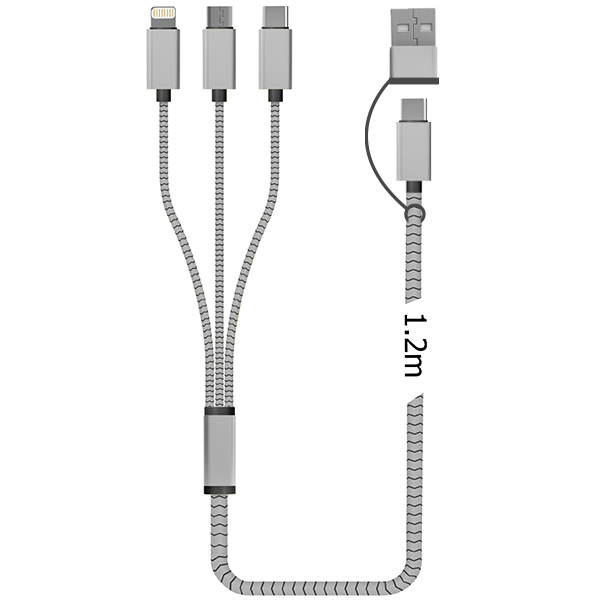 כבל משולב 5 ב-1 תואם: Type-C/iPhone/Android Micro