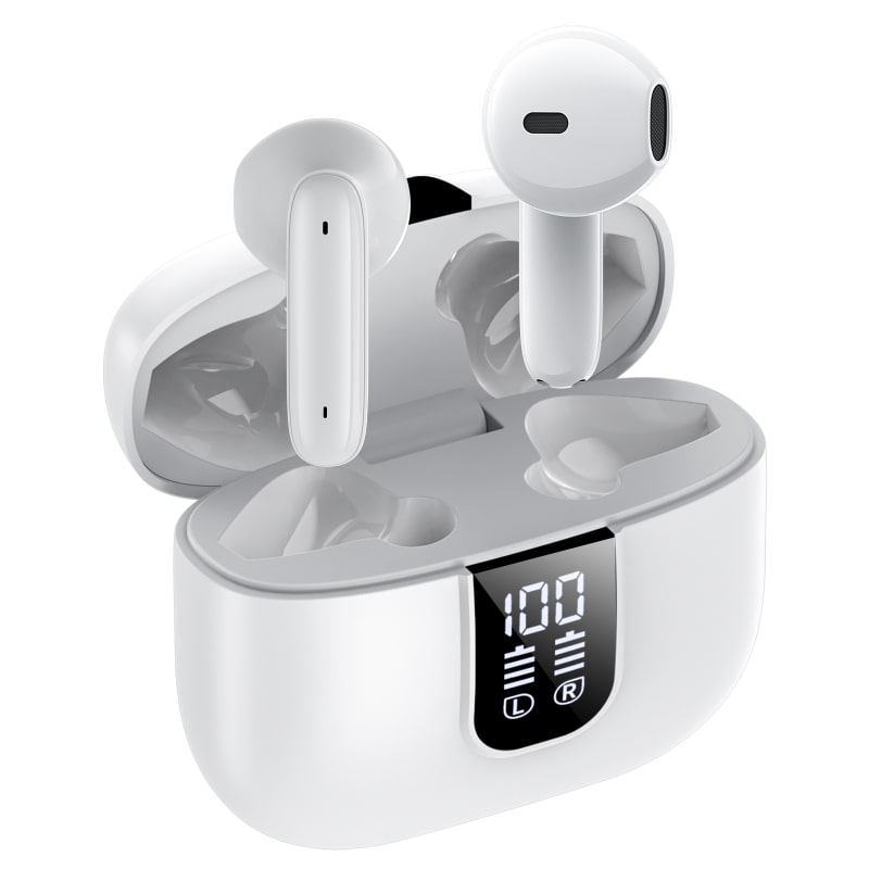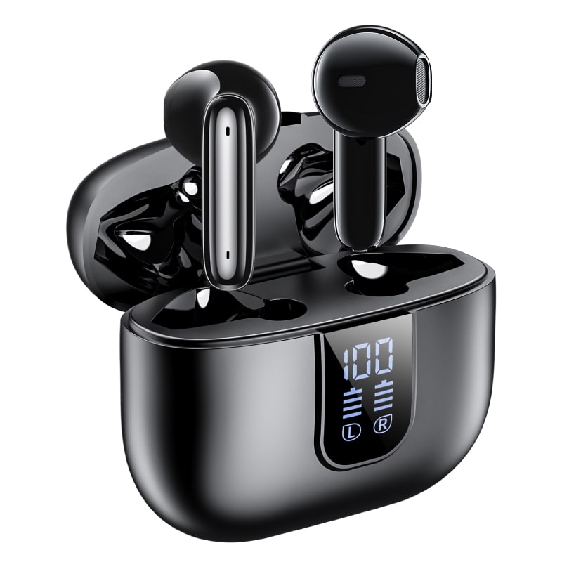 עם מסך תצוגה המראה את עוצמת הסוללה בכל אוזניה