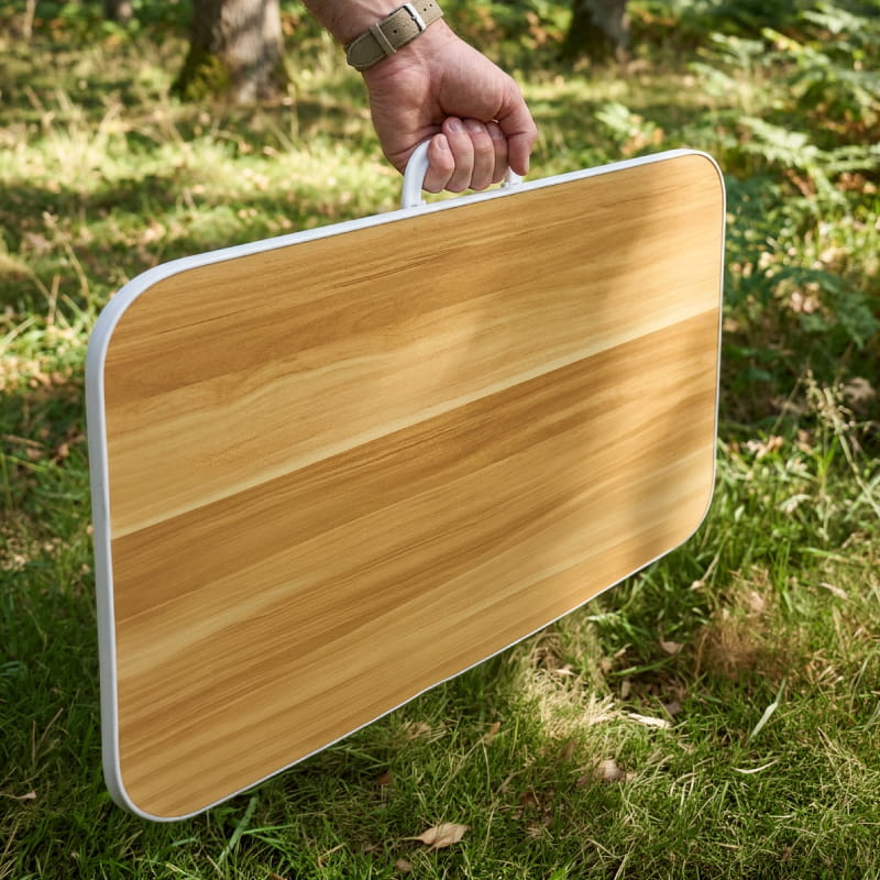 השולחן נפתח ומתקפל בקלות עם ידית נשיאה