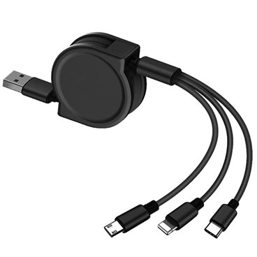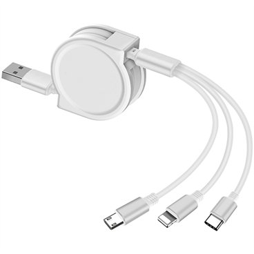 כבל טעינה קפיצי בגלגלת אוניברסאלי 3 ב-1