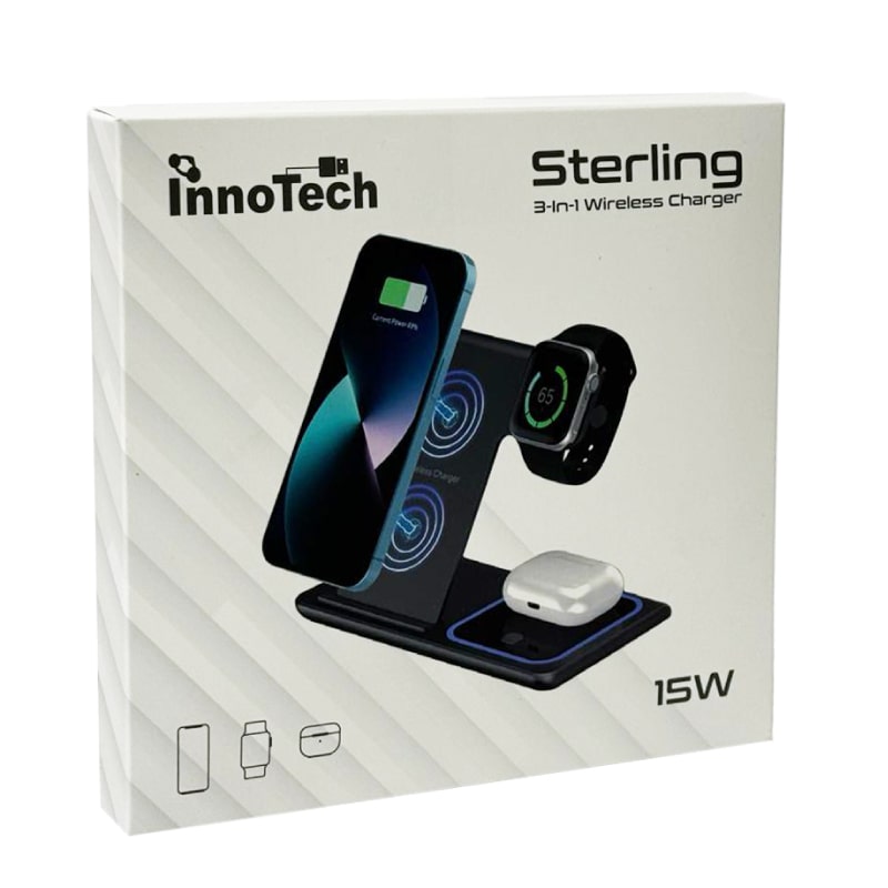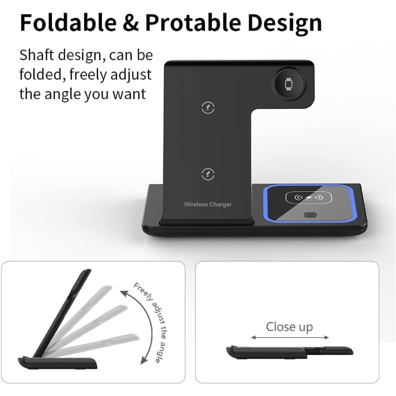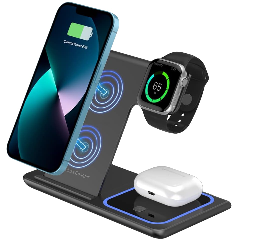 תחנת טעינה , מאפשרת טעינת 3 מכשירים במקביל -טלפון ,אוזניות ושעון חכם עם תאורה