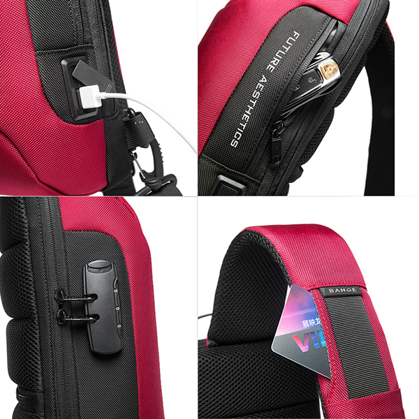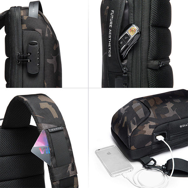תיק צד נגד גניבות עמיד במים עם נעילה TSA וכבל USB מובנה לטעינה ניידים יוניסקס צבע שחור מבית המותג BANGE