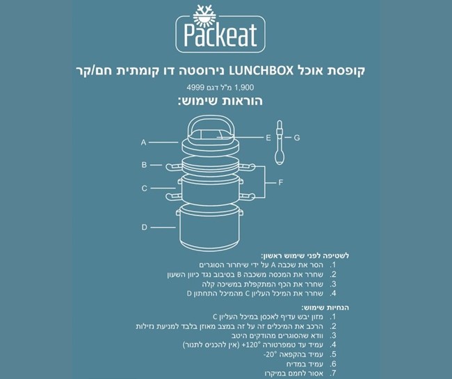 Lunch Box קופסת אוכל כפולה נירוסטה חם/קר מבית המותג Pack&eat